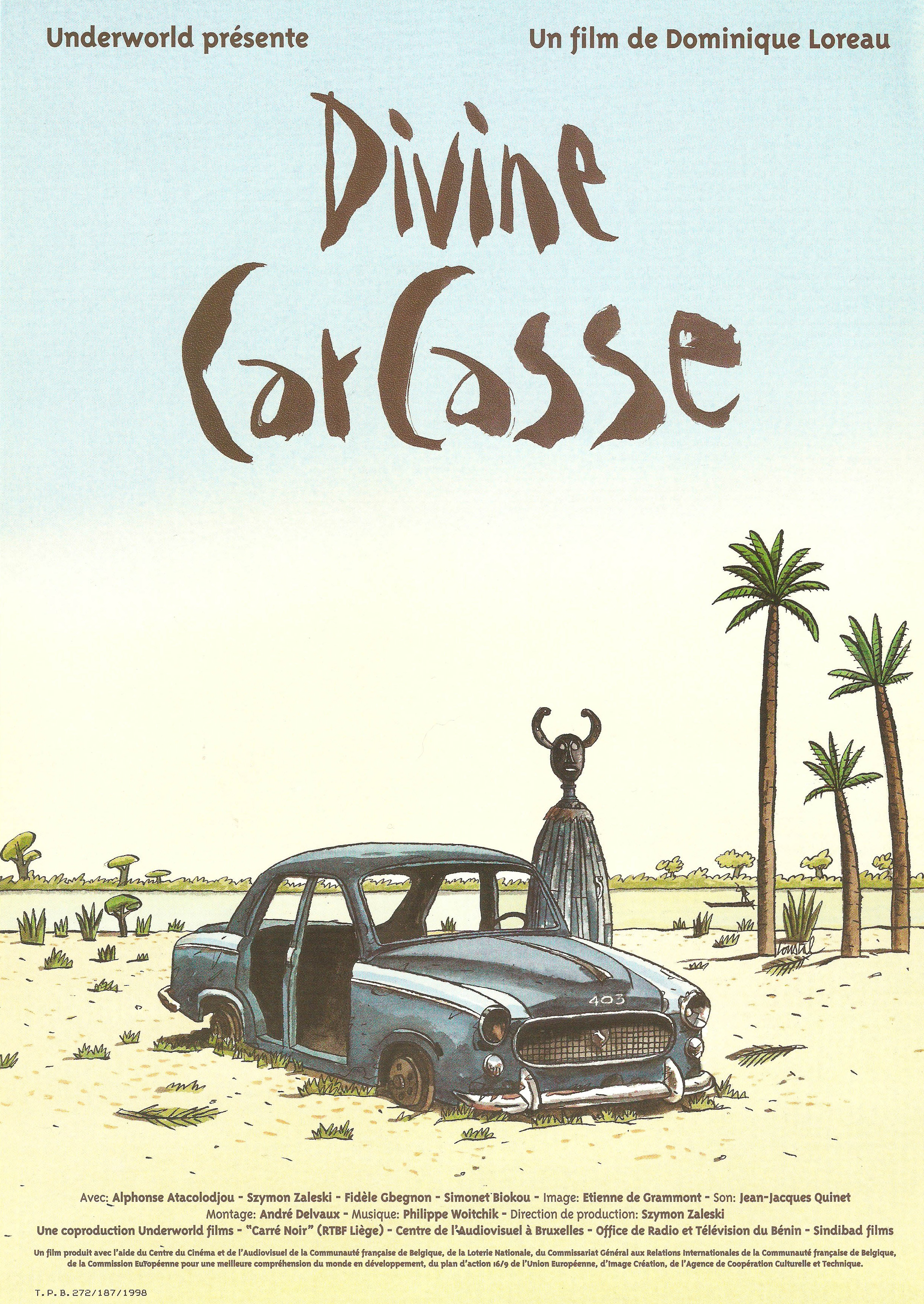 Divine Carcasse35mm-88min. Long-métrage produit par Underworld films, avec Szymon Zaleski, Alphonse Atacolodjou, Simonet Biokou. Image : Etienne de Grammont Ce film est constitué de la sagesse d’un conte africain, de la qualité d’une observation ethnographique et de quelques atouts de la fiction. Le personnage principal est une vieille bagnole de marque Peugeot 403 qui débarque d’un cargo au Bénin. Conduite d’abord par un Européen, elle tombe en panne, change de propriétaire, puis cesse définitivement de rouler. Son histoire est faite de passages de mains en mains, d’une culture à l’autre, d’un usage utilitaire à une fonction d’inspiration religieuse. En effet, en une spectaculaire métaphore de la transsubstantiation, la 403 immobilisée est démantibulée pour être réinventée sous la forme d’une sculpture ayant valeur de fétiche. Dominique Loreau a mis en scène des personnages qui jouent (presque) tous leur propre rôle. Les plans souvent assez longs et les cadrages larges permettent au réel de se mêler de la prise de vue, de la documenter, d’y instiller l’épaisseur des situations dans lesquelles le récit progresse. La fiction est sans arrêt congédiée, ou plutôt relativisée, par la saisie documentariste des scènes. Avec une petite équipe de cinq personnes, la cinéaste avait décidé de faire la part belle à l’improvisation. Etonnamment, le film entre en symbiose avec la société béninoise. Le fétiche fabriqué pour les besoins du film n’a pu l’être que parce qu’un village avait précisément besoin d’une nouvelle figure rituelle. divine carcasse, film de Blancs, était devenu, momentanément du moins, une part constitutive d’une identité culturelle africaine. Au terme de ce parcours, le film offre, entre documentaire et fiction, le spectacle d’une contamination fertile et réciproque de deux visions du monde. Pour en savoir plus : Presse papier : Presse web :